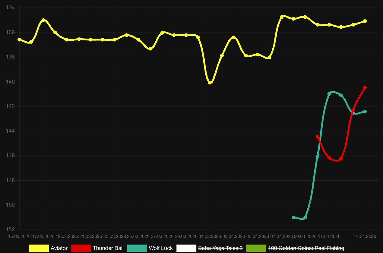 हम विभिन्न देशों के ऑनलाइन कैसीनो प्लेटफॉर्म्स को डेस्कटॉप और मोबाइल दोनों पर विश्लेषित करके यह निर्धारित करते हैं कि कौन से गेम सबसे अधिक लोकप्रिय हैं। SlotCatalog की रैंकिंग प्रणाली Average Lobby Position (ALP) पर आधारित है, जो यह दिखाती है कि कोई गेम कैसीनो लॉबी में कितनी प्रमुखता से दिखाई देता है। बेहतर पोज़िशन वाले गेम्स को उच्च रैंक प्राप्त होता है।